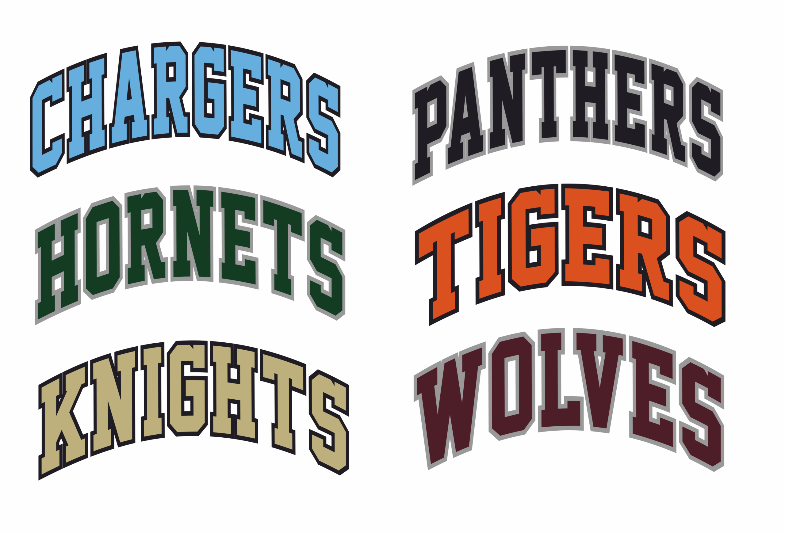 Chargers, Hornets, Knights, Panthers, Tigers, Wolves |